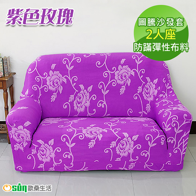 【Osun】一體成型防蹣彈性沙發套、沙發罩紫色玫瑰系列2人座(CE173)