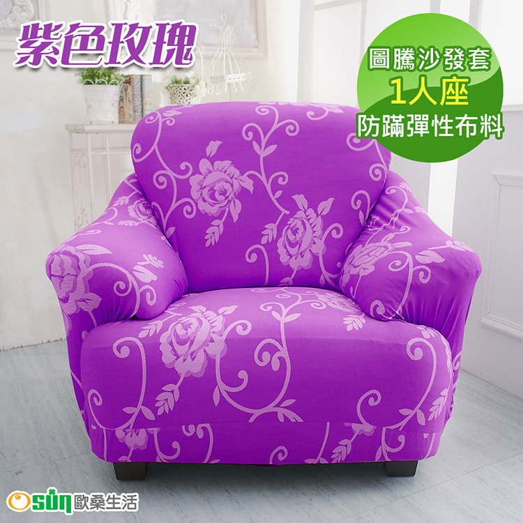 【Osun】一體成型防蹣彈性沙發套、沙發罩紫色玫瑰系列1人座(CE173)