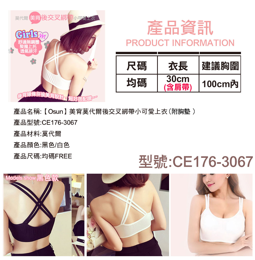品名:【Osun】美背莫代爾後交叉綁帶小可愛上衣 (顏色任選,CE176-3067)