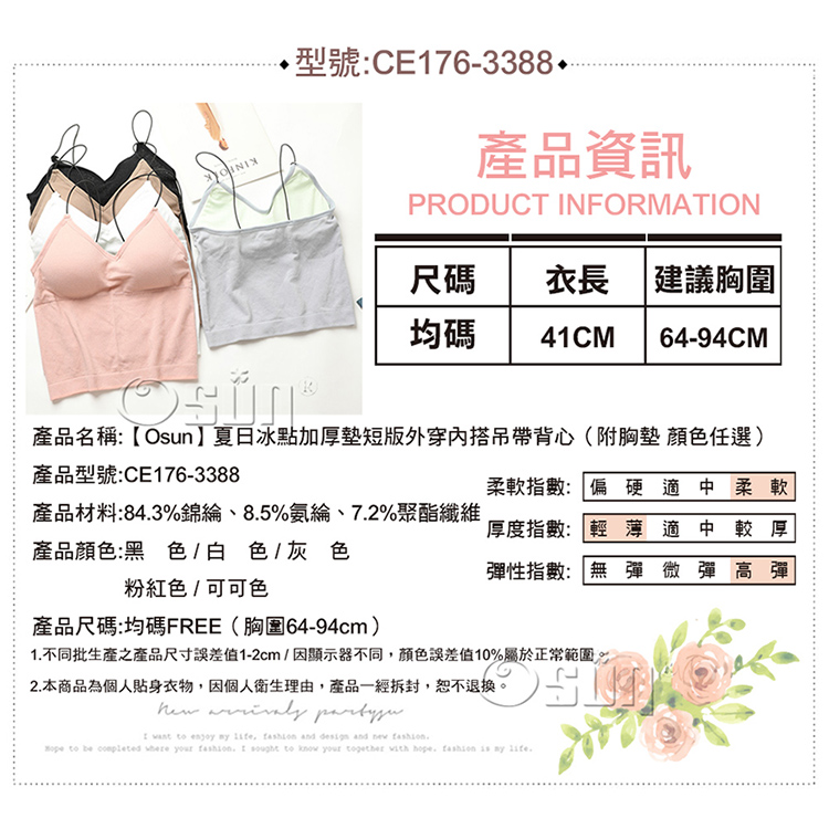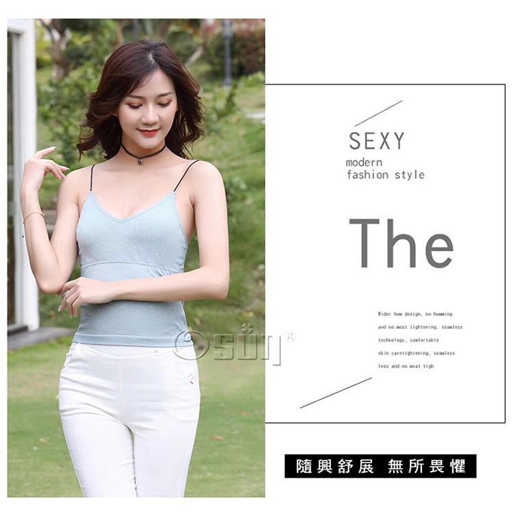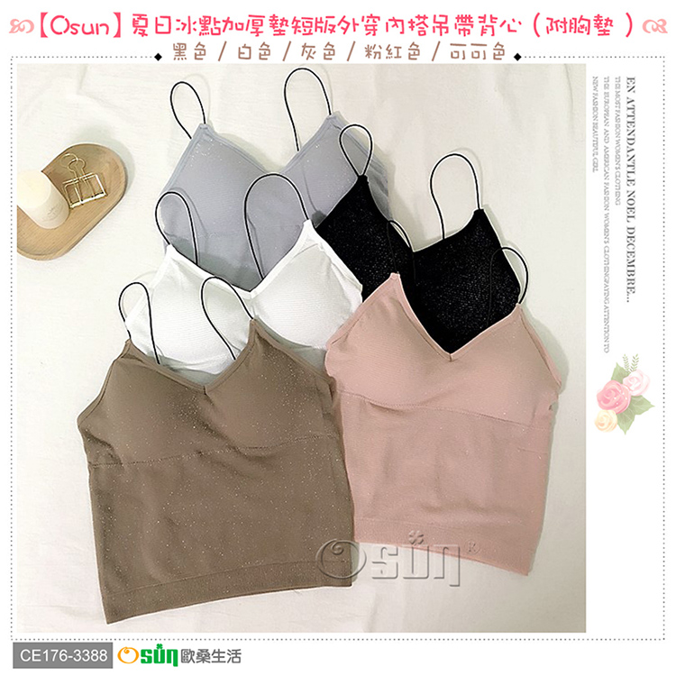 產品名稱:【Osun】夏日冰點加厚墊短版外穿內搭吊帶背心(附胸墊,CE176-3388)