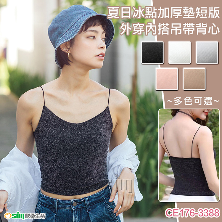 【Osun】夏日冰點加厚墊短版外穿內搭吊帶背心(附胸墊,CE176-3388)