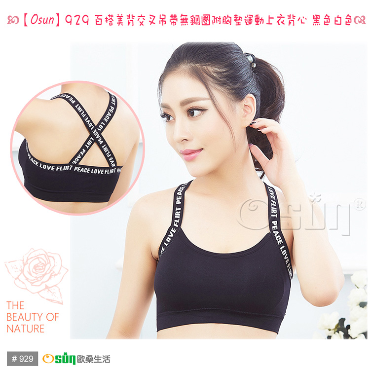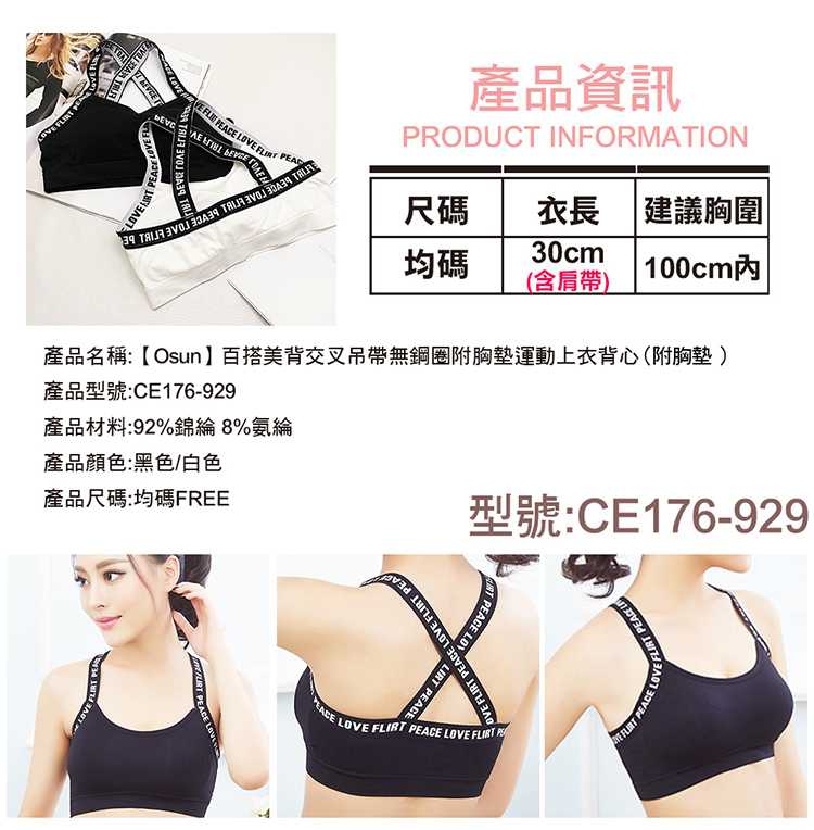 品名:【Osun】百搭美背交叉吊帶無鋼圈附胸墊運動上衣背心 (顏色任選,CE176-929)