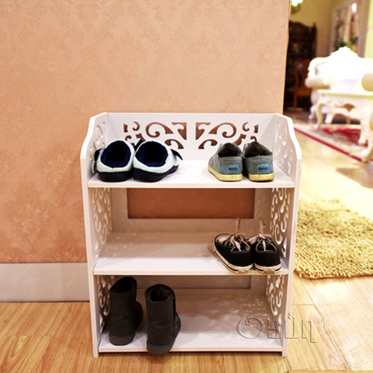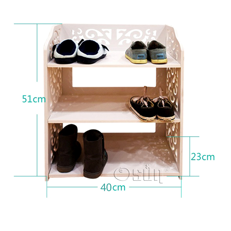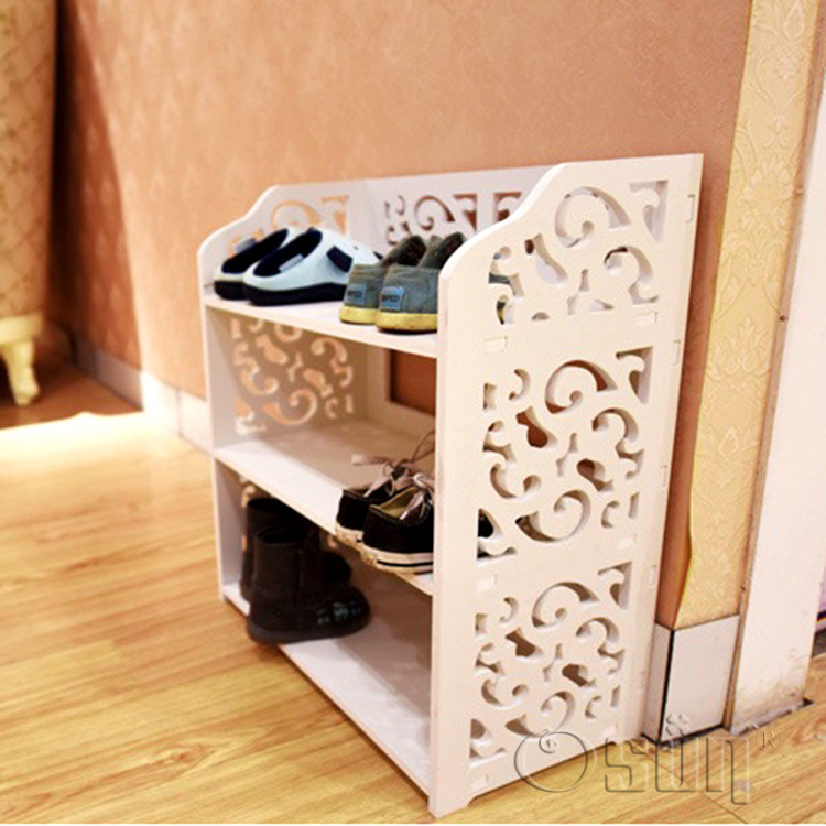 品名:【Osun】DIY木塑板白色雕花三層鞋架(CE178-XJ001)