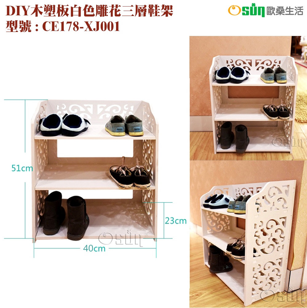 品名:【Osun】DIY木塑板白色雕花三層櫻花層架(CE178-YH8240)