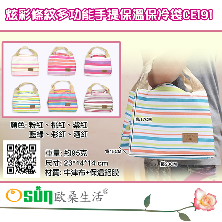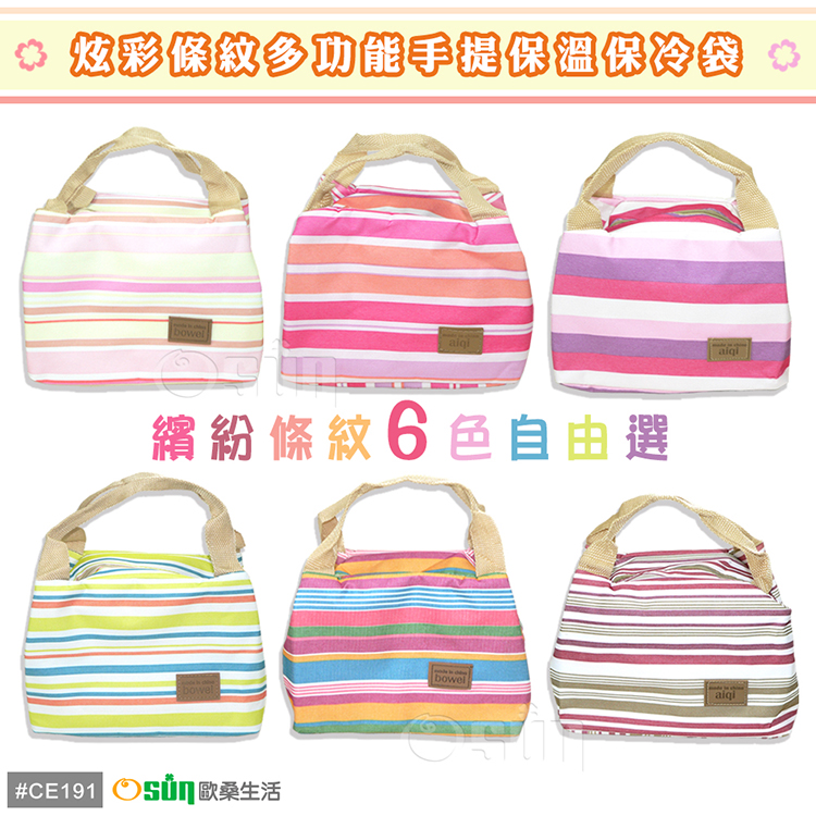 品名:【Osun】炫彩條紋多功能手提保溫保冷袋-2入 (CE191)