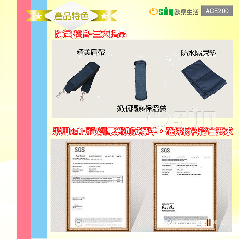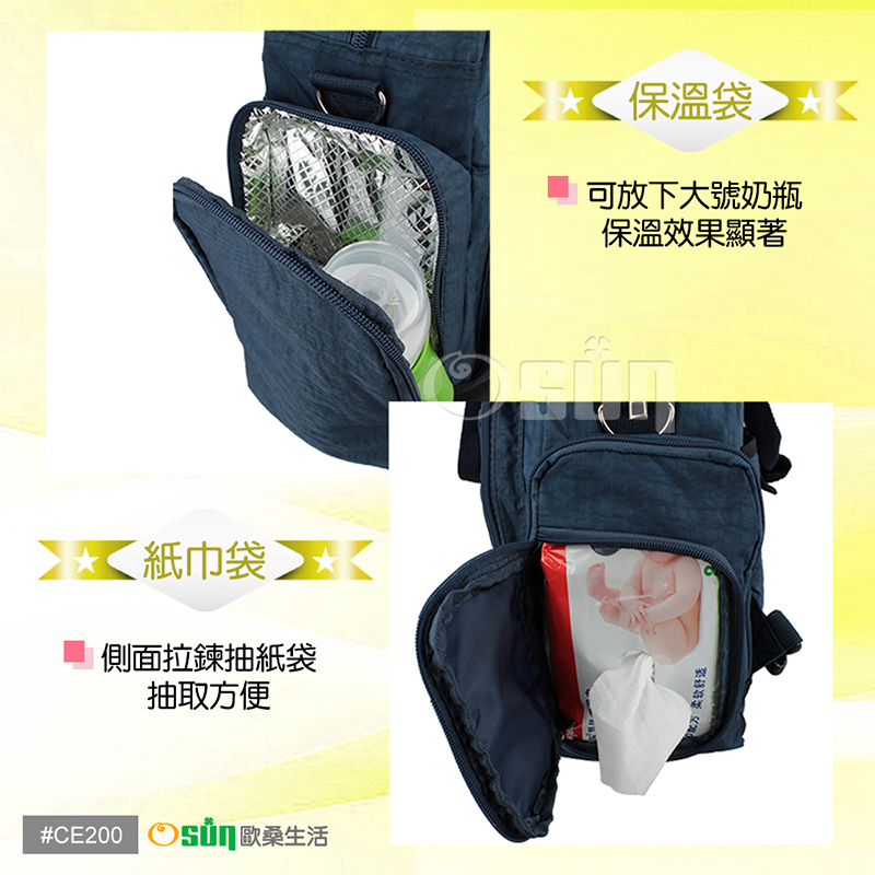 品名 :【Osun】新款無毒超容量後背側背斜背手提四用媽咪包、媽媽包CE200