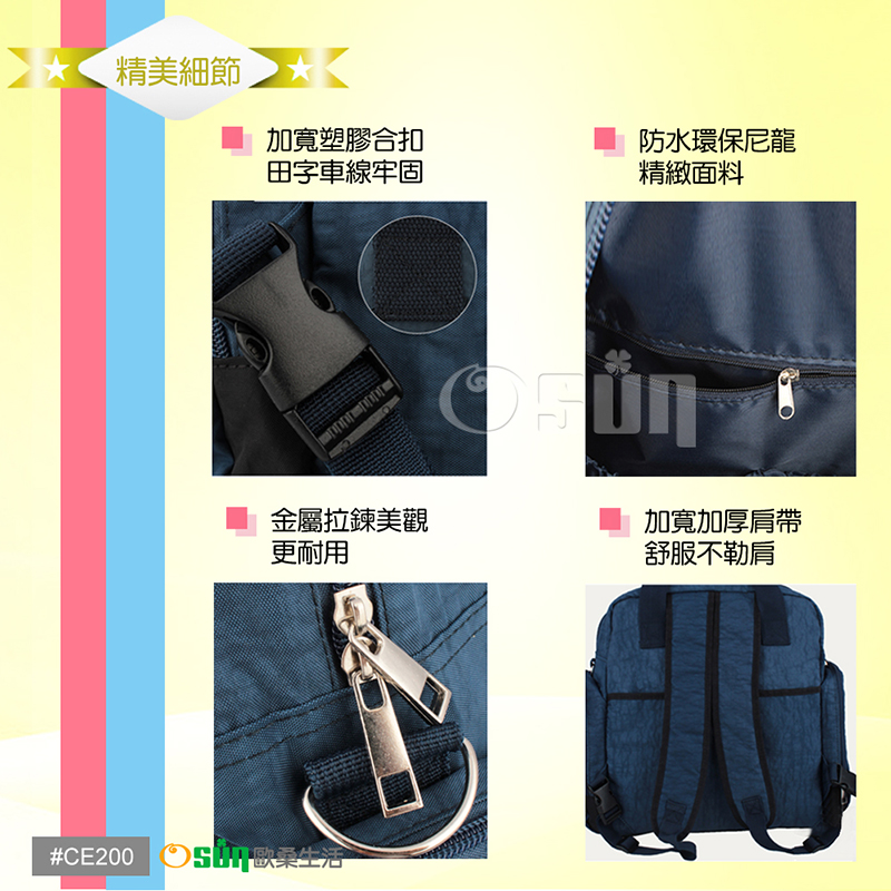 【Osun】新款無毒超容量後背側背斜背手提四用媽咪包、媽媽包(CE200桃紅/深藍/湖水藍)
