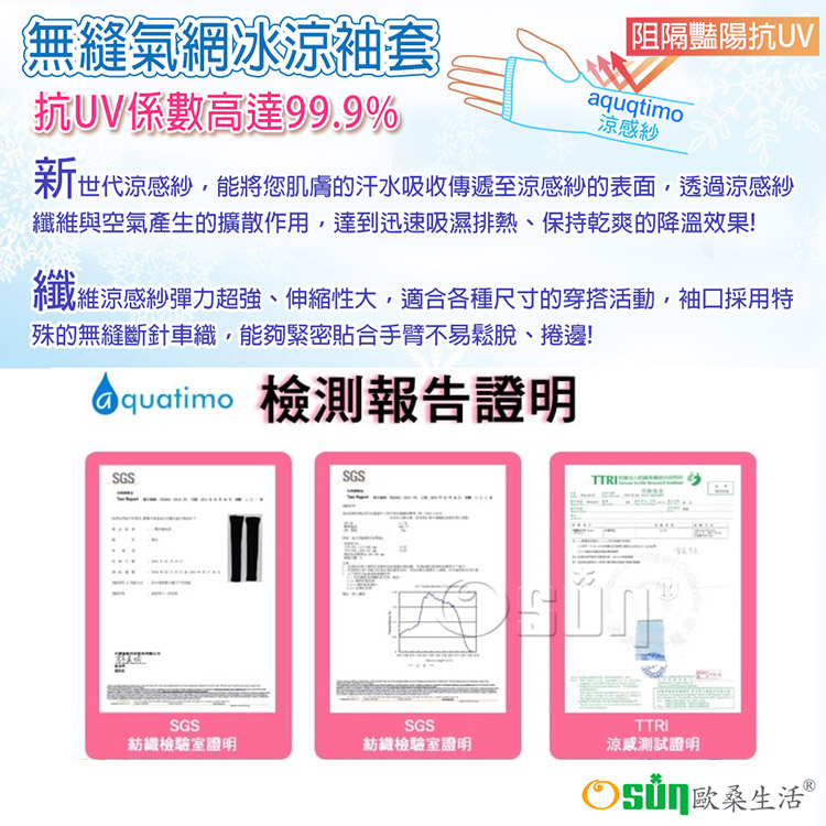 2. 採用aquatimo吸濕排汗涼感紗-95%涼感紗、5%彈性纖維