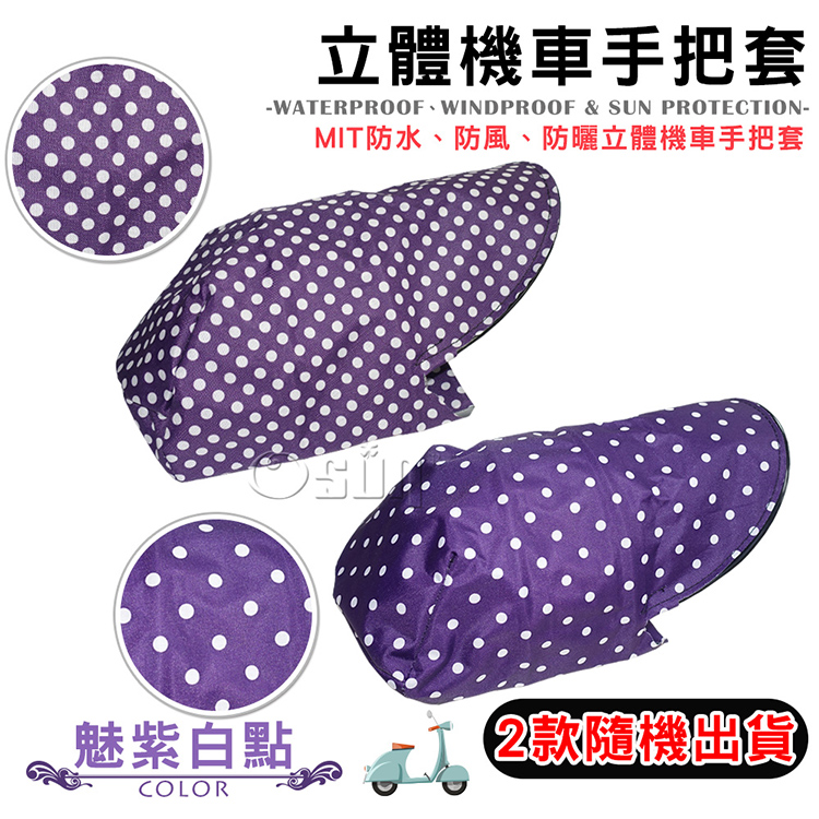 【Osun】MIT防水防風防曬立體機車手把套(魅紫白點,CE229)2款隨機出貨