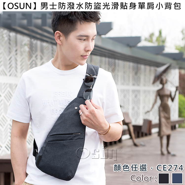 【Osun】男士防潑水防盜光滑貼身單肩小背包(顏色任選,CE274)