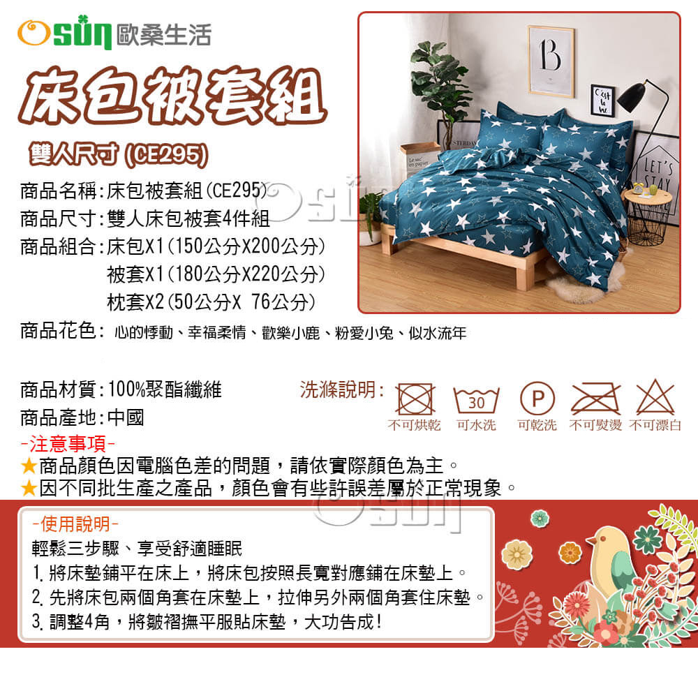 【Osun】床包被套組-雙人(CE295)