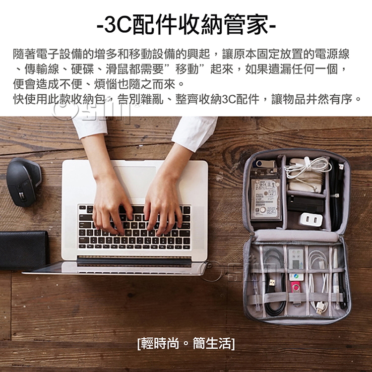★旅遊收納一把罩,3C充電器、線材整齊分類!★