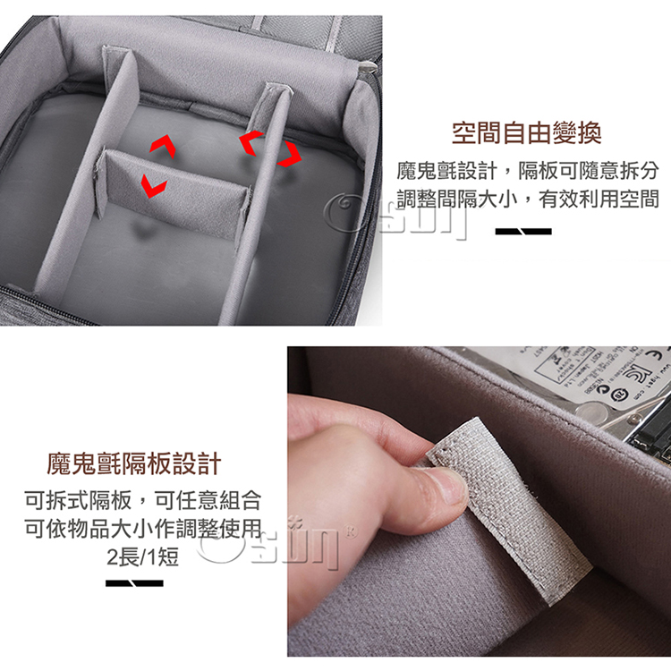 快來使用【OSUN】分隔可調陽離子3C電器手機配件線材可擕式防潑水收納包幫您解決收納煩惱~