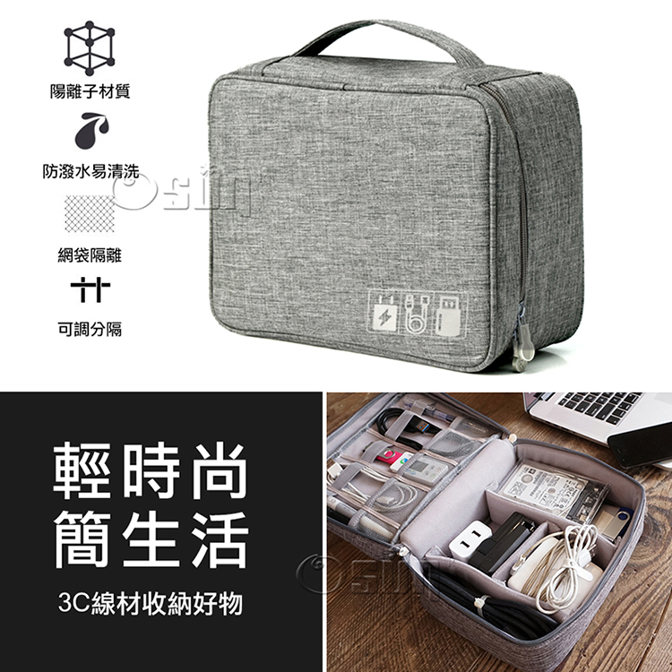 【Osun】分隔可調陽離子3C電器手機配件線材可攜式防潑水收納包(顏色任選,CE296)