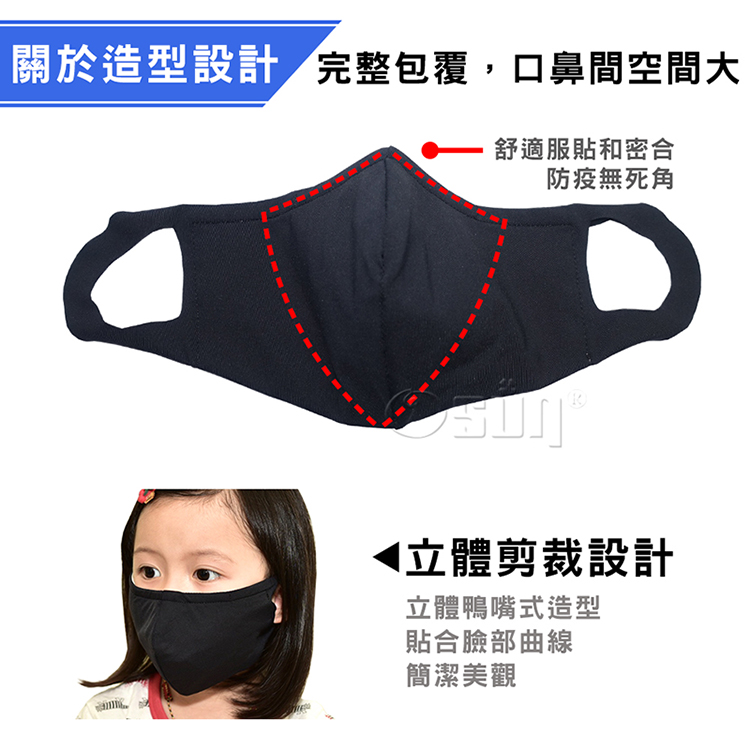品 名:【Osun】一體成型防疫3D立體三層防水運動透氣布口罩台灣製造
