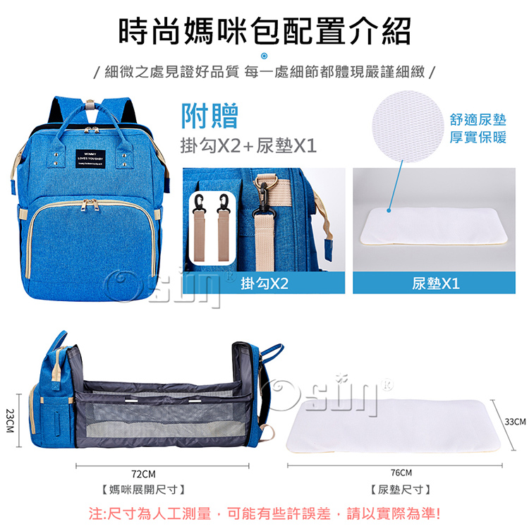 產品名稱:【Osun】多功能防潑水媽咪雙肩背包野餐背包嬰兒床背包(顏色任選,CE349A)