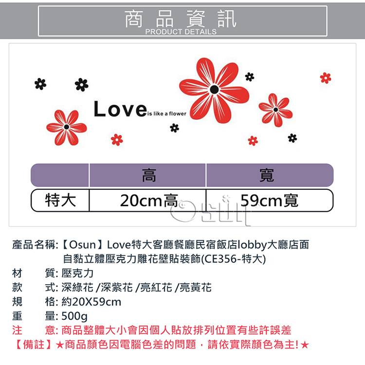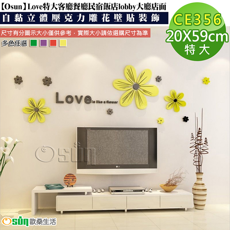 產品名稱:【Osun】Love特大客廳餐廳民宿飯店lobby大廳店面自黏立體壓克力雕花壁貼裝飾(CE356-特大)