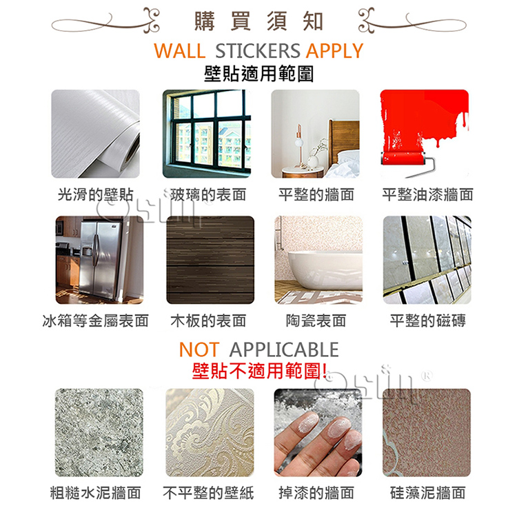 光滑的壁貼/玻璃的表面/平整的牆面/平整油漆牆面/冰箱等金屬表面/木板的表面/陶瓷表面/平整的磁磚