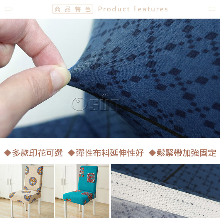 品名 :【Osun】酒店餐廳風格印花彈性椅子套簡約家用座椅背餐椅套(2個/袋)