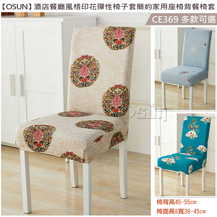 【Osun】酒店餐廳風格印花彈性椅子套簡約家用座椅背餐椅套 (2個/袋,多款可選CE369)