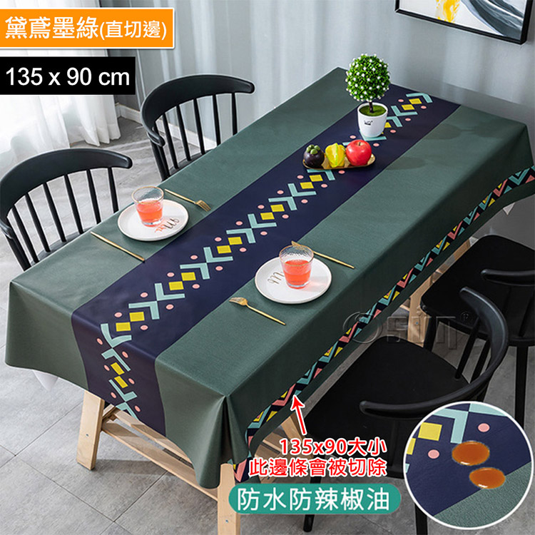【Osun】北歐風餐桌布桌巾茶几桌墊PVC防水防燙防油可水洗擦拭135x90cm (多款任選-直切/波浪款 CE383)