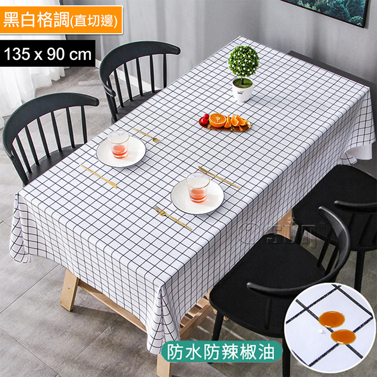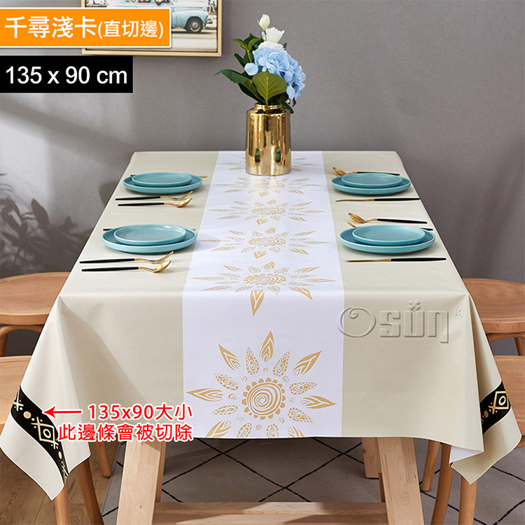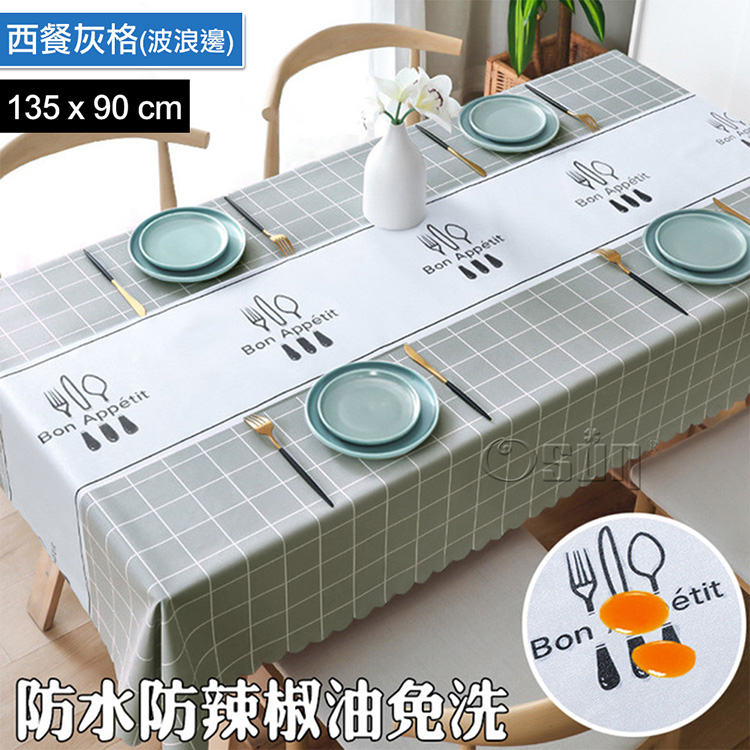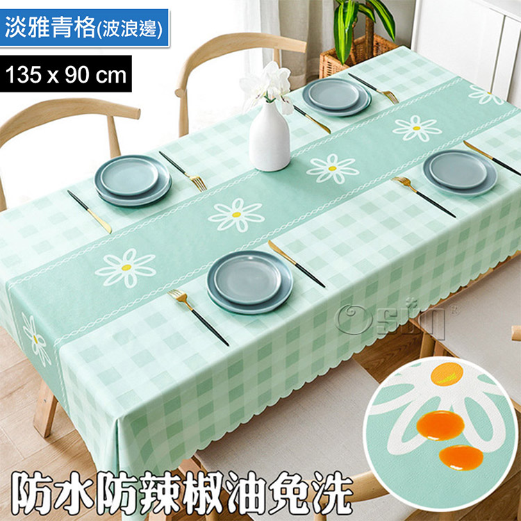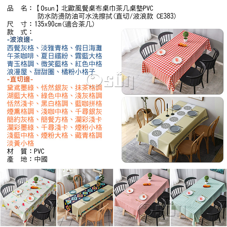 品名 :【Osun】北歐風餐桌布桌巾茶几桌墊PVC防水防燙防油可水洗擦拭135x90cm(多款任選-直切/波浪款 CE383)