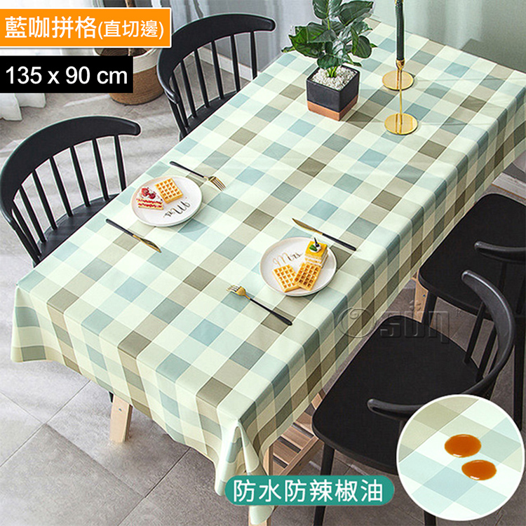 品名 :【Osun】印花風餐桌布桌巾茶几桌墊PVC防水防燙防油可水洗擦拭135x90cm(多款任選-直切/波浪款 CE383)