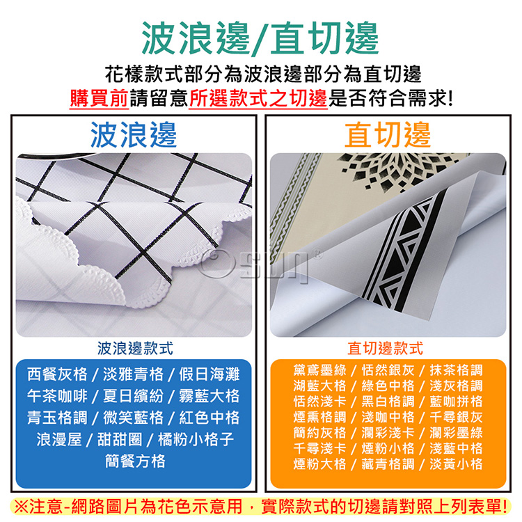 ★花樣款式部分為波浪邊部分為直切邊,購買前請留意所選款式之切邊是否符合需求!