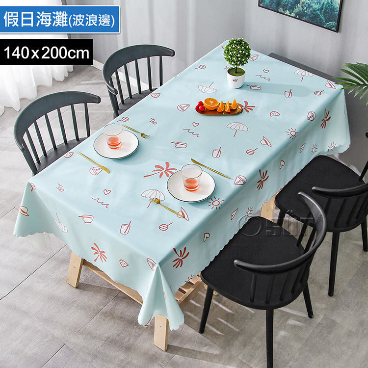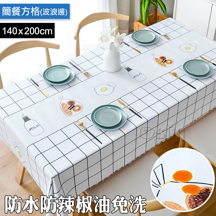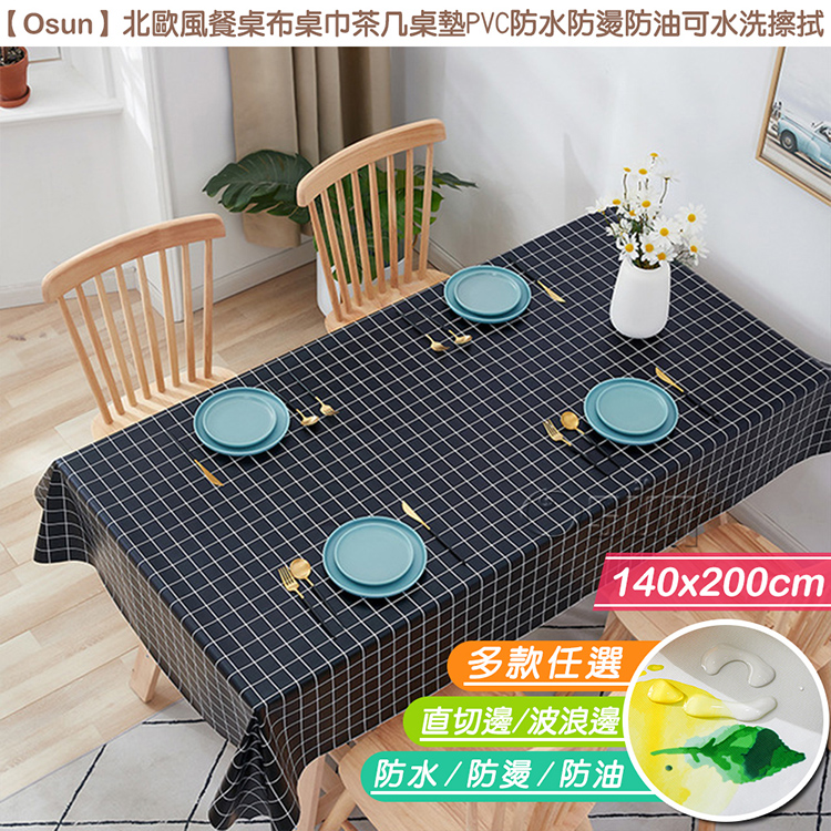 【Osun】北歐風餐桌布桌巾茶几桌墊PVC防水防燙防油可水洗擦拭140x200cm(多款任選-直切/波浪款 CE383)