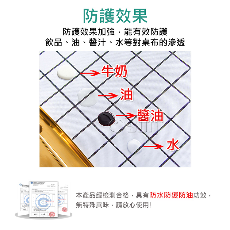 防護效果加強,能有效防護飲品、油、醬汁、水等對桌布的滲透