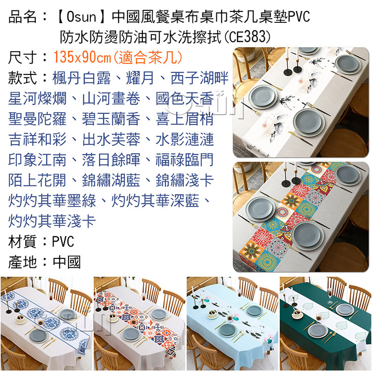 品名:【Osun】中國風餐桌布桌巾茶几桌墊PVC防水防燙防油可水洗擦拭135x90cm(多款任選/CE383)