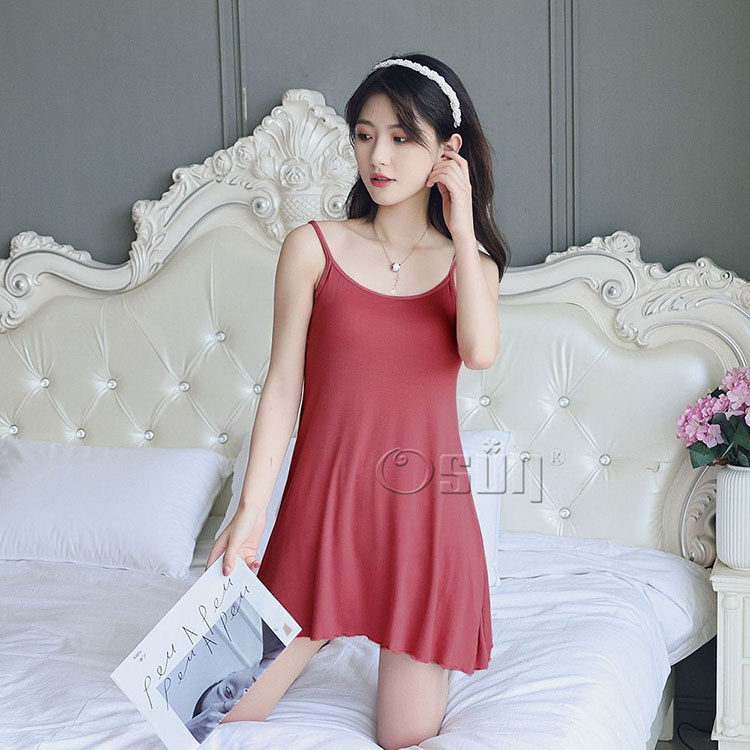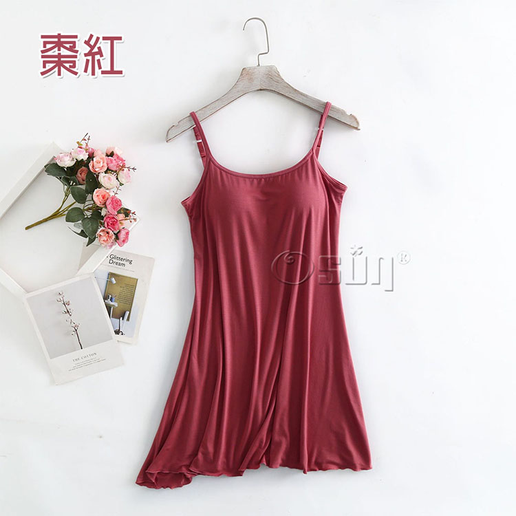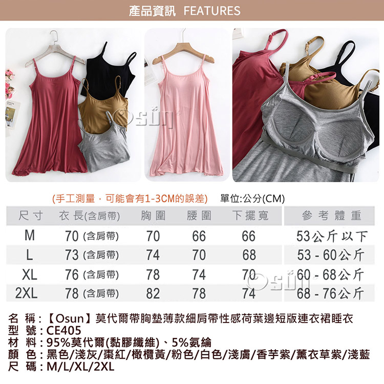 產品名稱:【Osun】莫代爾帶胸墊薄款細肩帶性感荷葉邊短版連衣裙睡衣