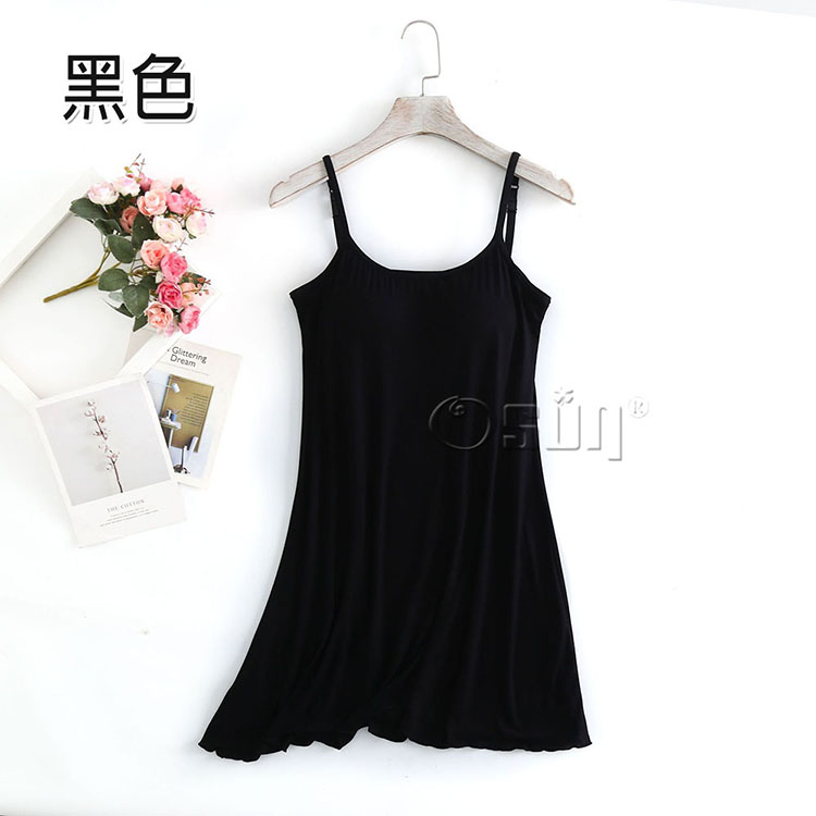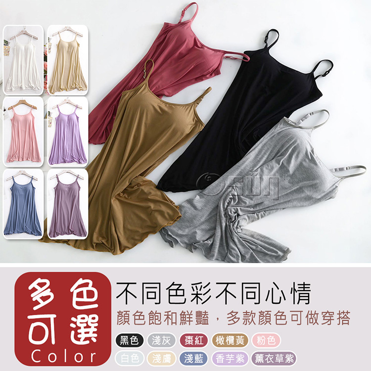 ★莫代爾舒適帶胸墊細肩帶連衣裙