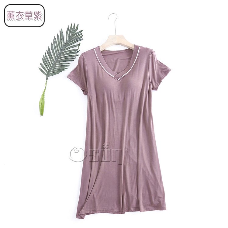 產品名稱:【Osun】莫代爾帶胸墊V領短袖大碼連衣裙睡衣居家休閒服