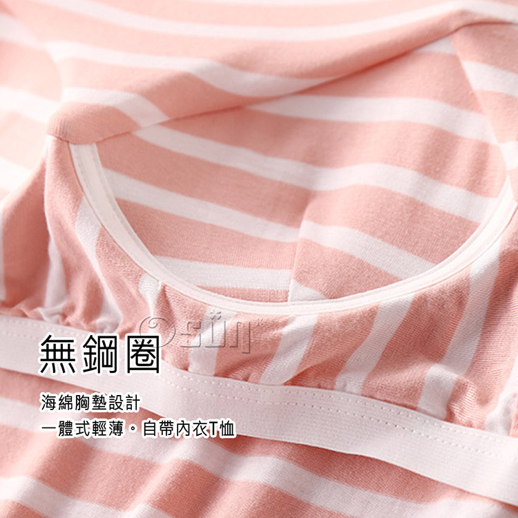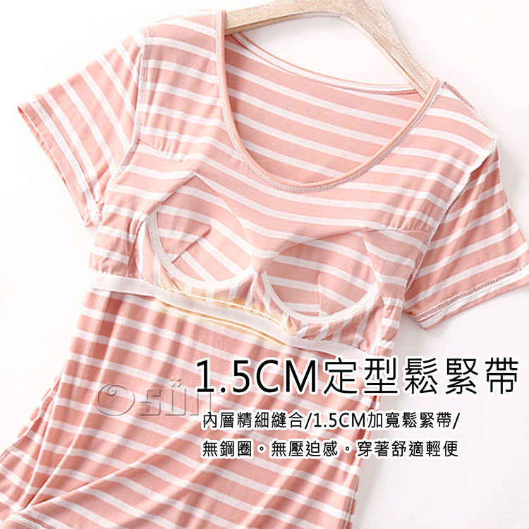 產品名稱:【Osun】莫代爾中大尺吋bra-t條紋帶胸墊短袖七分褲睡衣套裝寬鬆居家休閒服