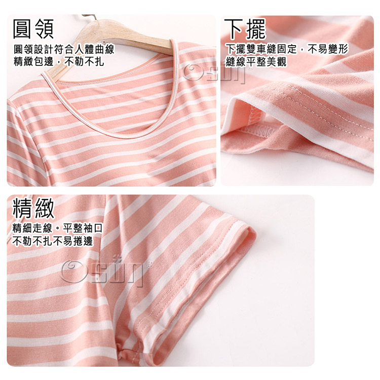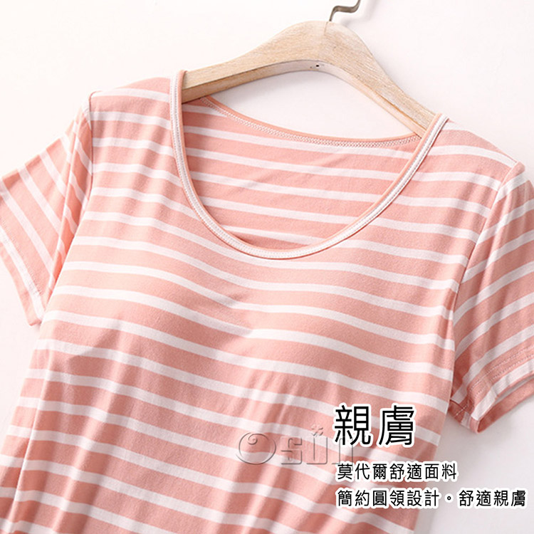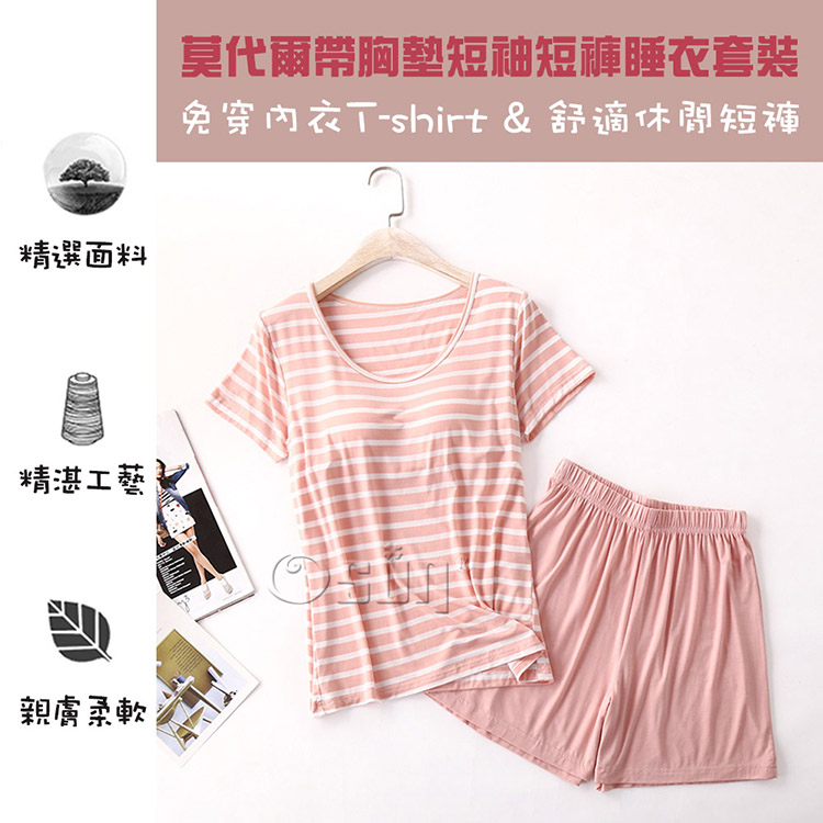 產品名稱:【Osun】莫代爾中大尺吋bra-t條紋帶胸墊短袖短褲睡衣套裝寬鬆居家休閒服