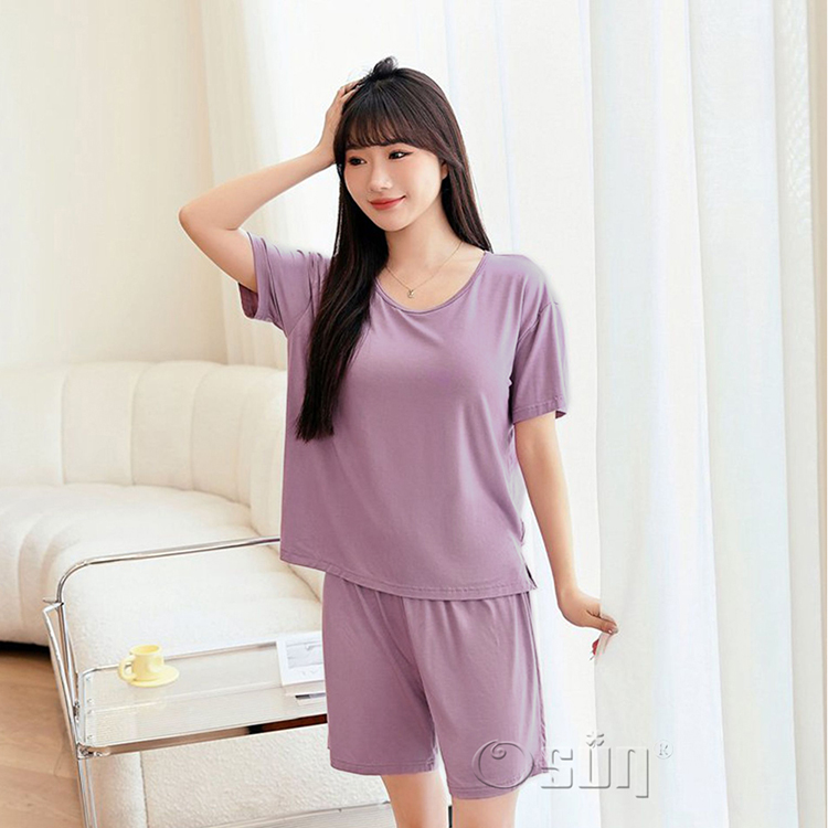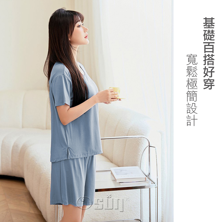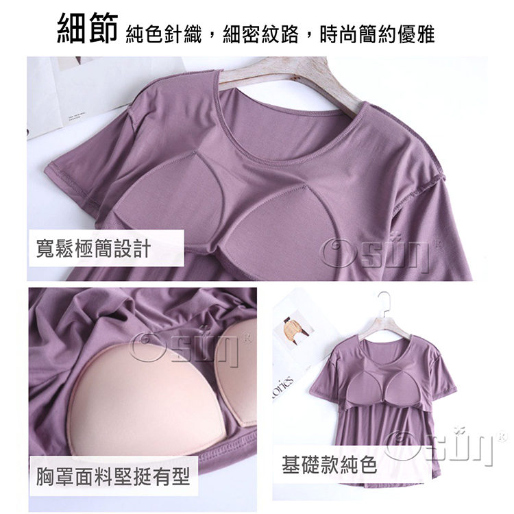 品名:【Osun】莫代爾中大尺碼bra-t純色帶胸墊短袖短褲睡衣套裝寬鬆居家休閒服(顏色任選/CE407)