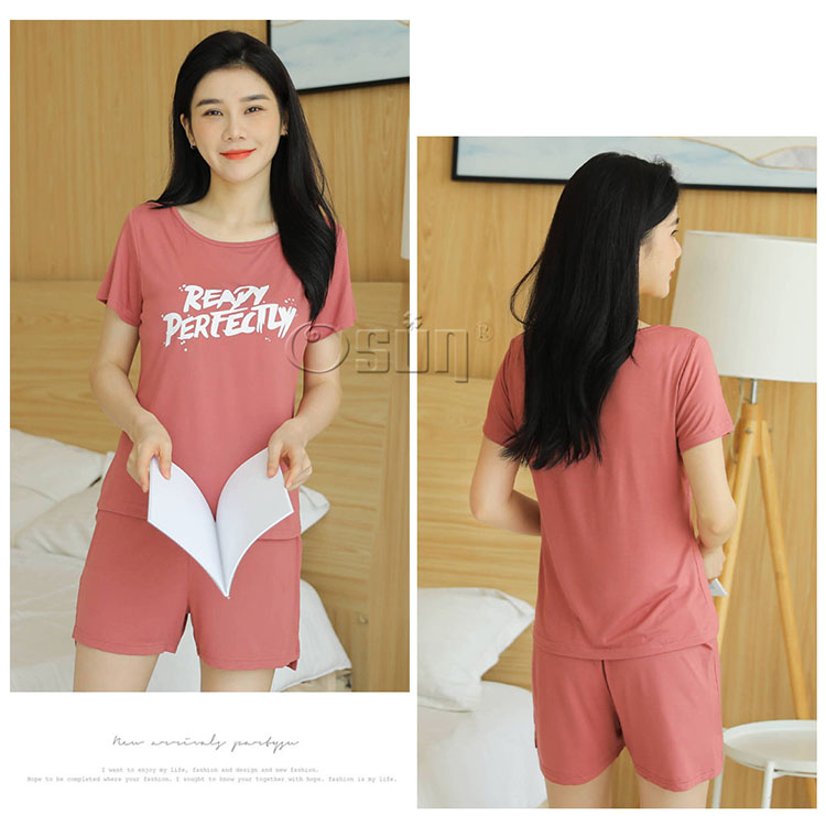 產品名稱:【Osun】莫代爾中大尺吋bra-t帶胸墊Ready短袖短褲睡衣套裝寬鬆居家休閒服