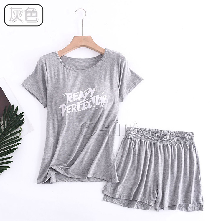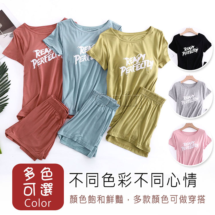 -莫代爾帶胸墊短袖上衣+休閒短褲套裝-