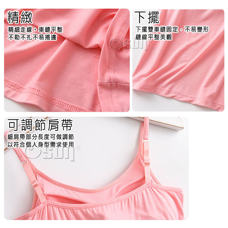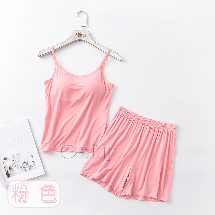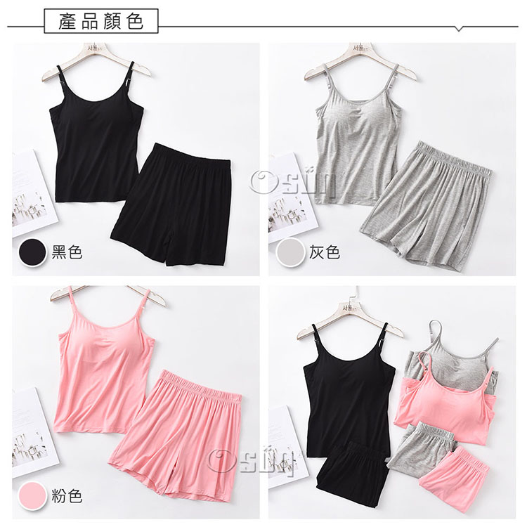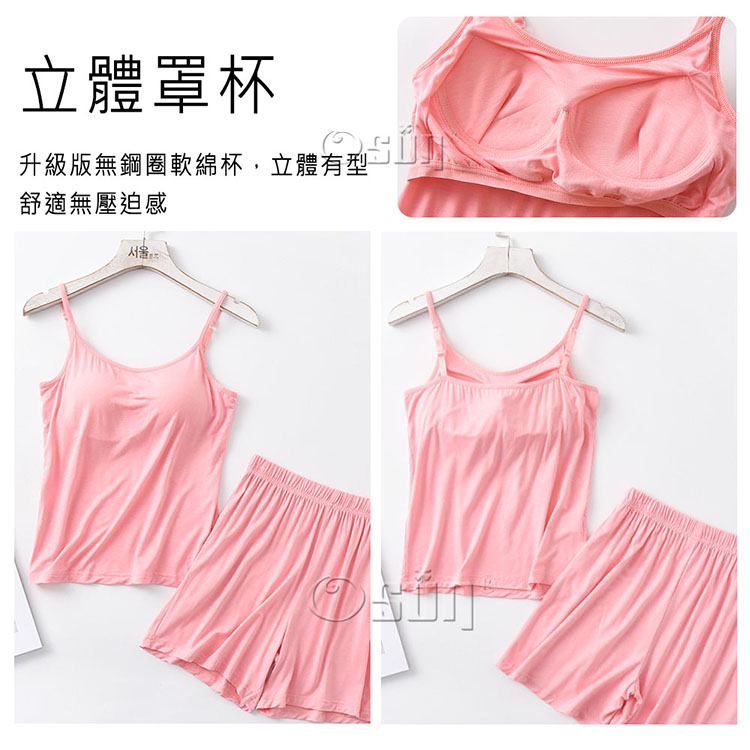 產品名稱:【Osun】莫代爾中大尺吋bra-t帶胸墊細肩帶背心睡衣短褲套裝居家休閒服