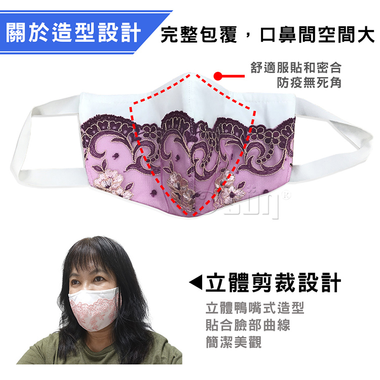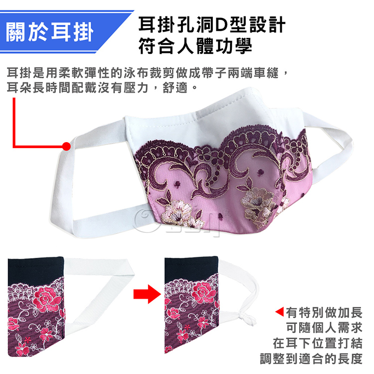 2.蕾絲經剪裁車縫,每個口罩外觀會有些微差異,圖片僅供參考
