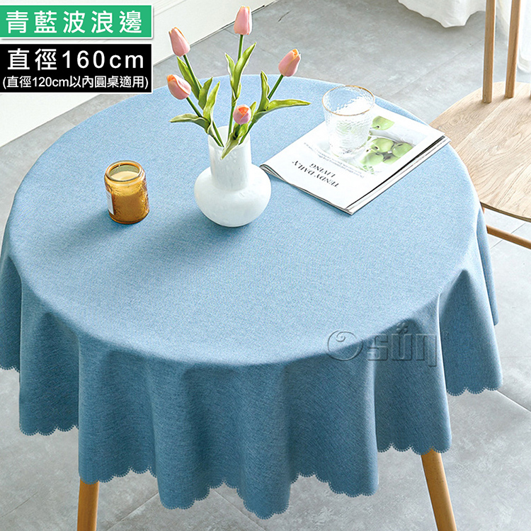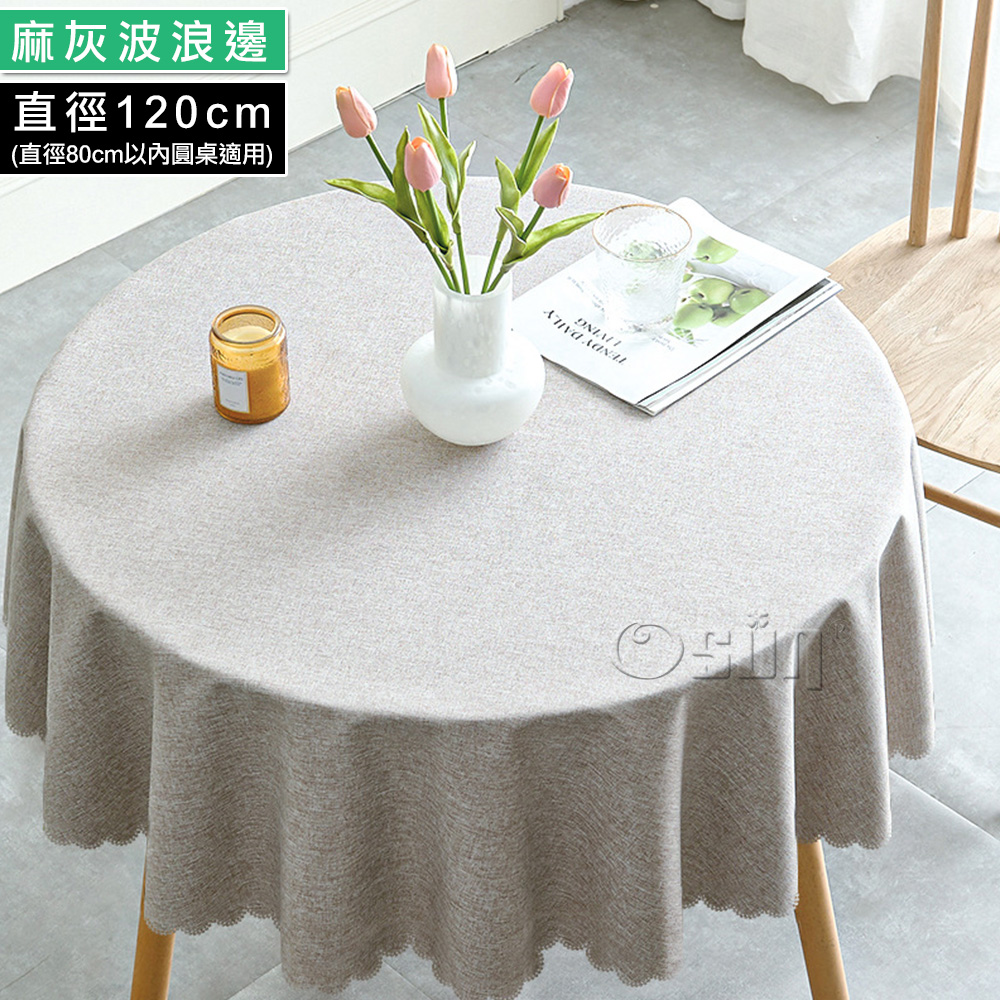 【Osun】120cm內直徑圓桌波浪邊北歐純色防水防油免洗桌布巾混紡棉麻桌墊(顏色任選/CE422)