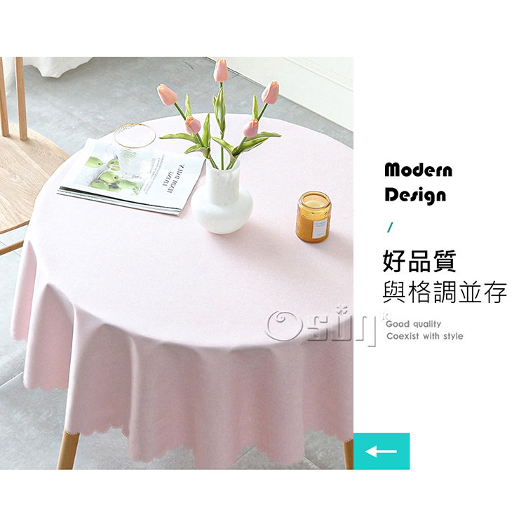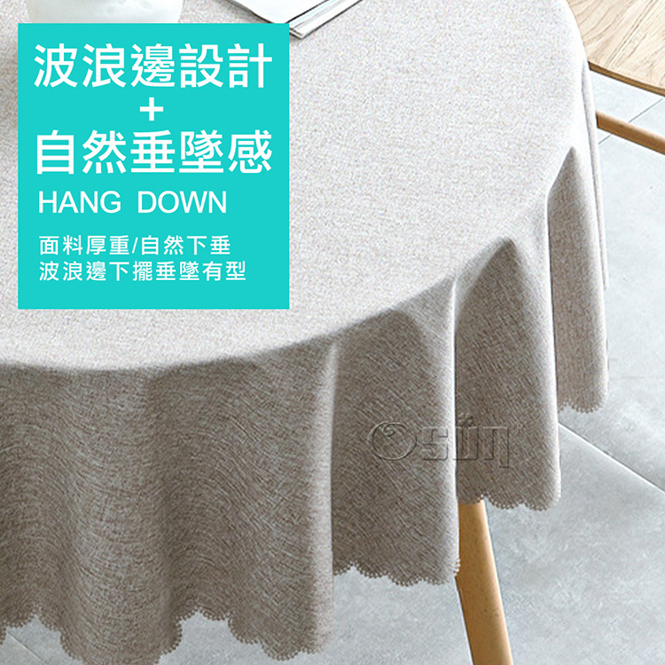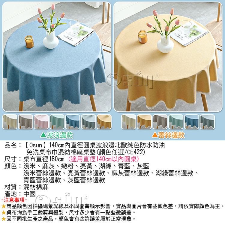 品名:【Osun】140cm內直徑圓桌波浪邊北歐純色防水防油免洗桌布巾混紡棉麻桌墊(顏色任選/CE422)