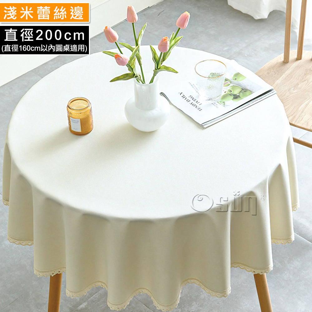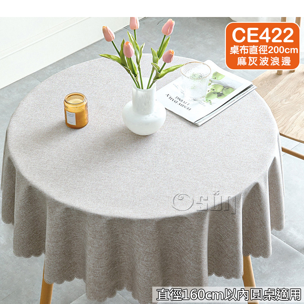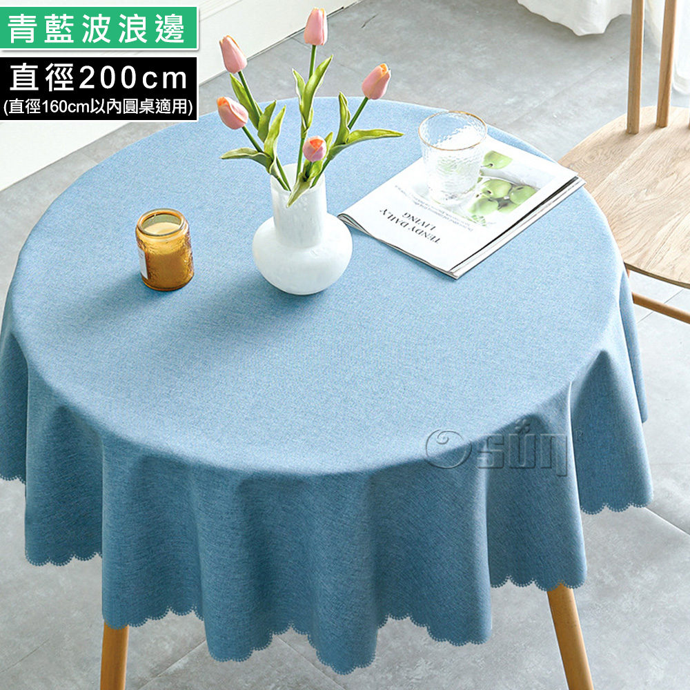 【Osun】160cm內直徑圓桌波浪邊北歐純色防水防油免洗桌布巾混紡棉麻桌墊(顏色任選/CE422)