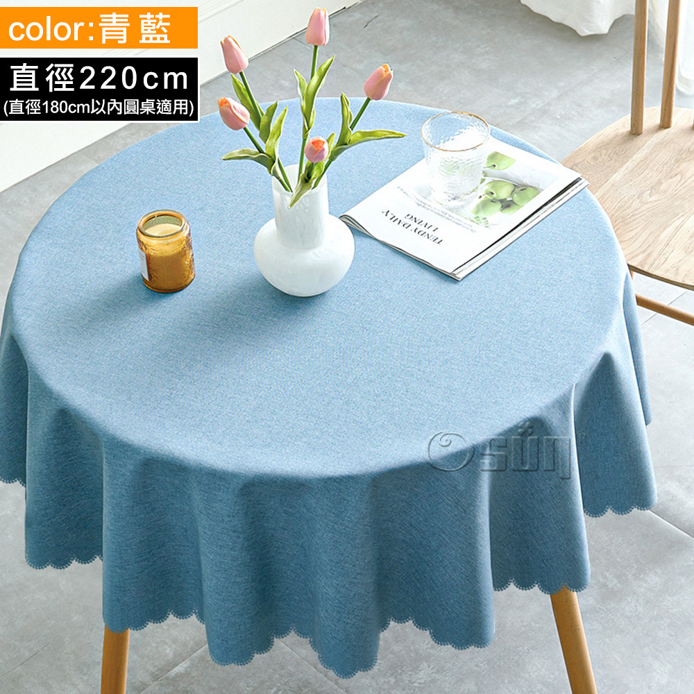 【Osun】180cm內直徑圓桌波浪邊北歐純色防水防油免洗桌布巾混紡棉麻桌墊(顏色任選/CE422)