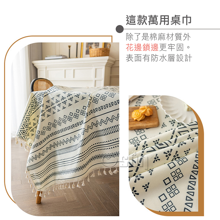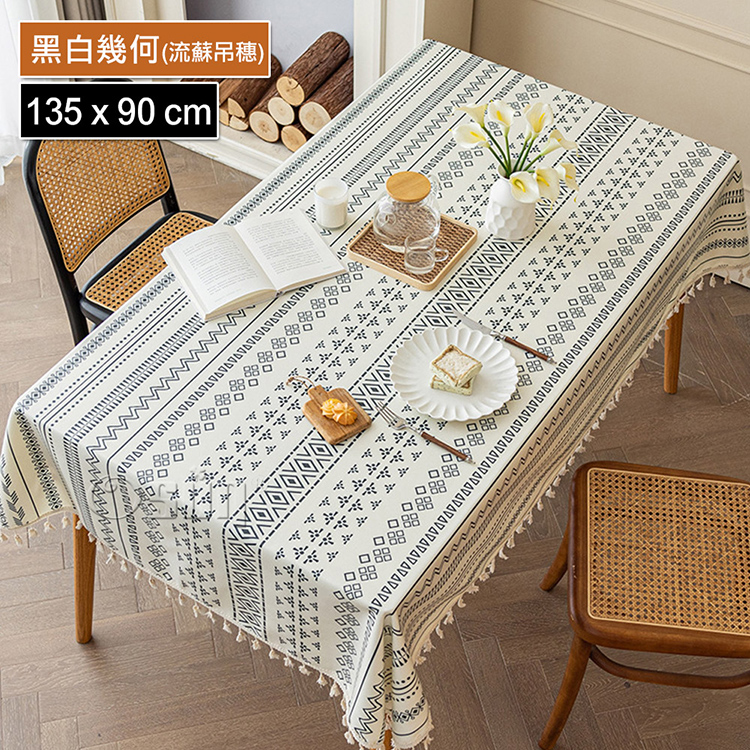 品名:【Osun】135x90cm波西米亞風民族風防水防油免洗棉麻布藝流蘇民宿餐桌巾桌布(顏色任選/CE422)