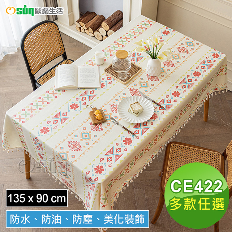 【Osun】135x90cm波西米亞風民族風防水防油免洗棉麻布藝流蘇民宿餐桌巾桌布(顏色任選/CE422)