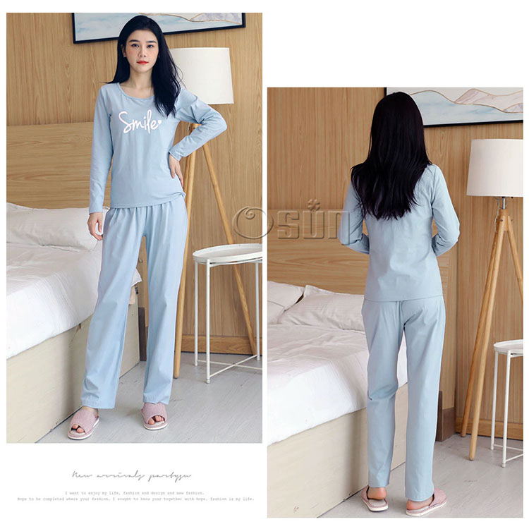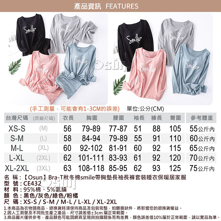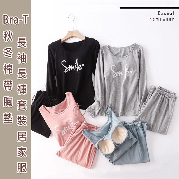 產品名稱:【Osun】Bra-T秋冬棉smile帶胸墊長袖長褲套裝睡衣保暖居家服