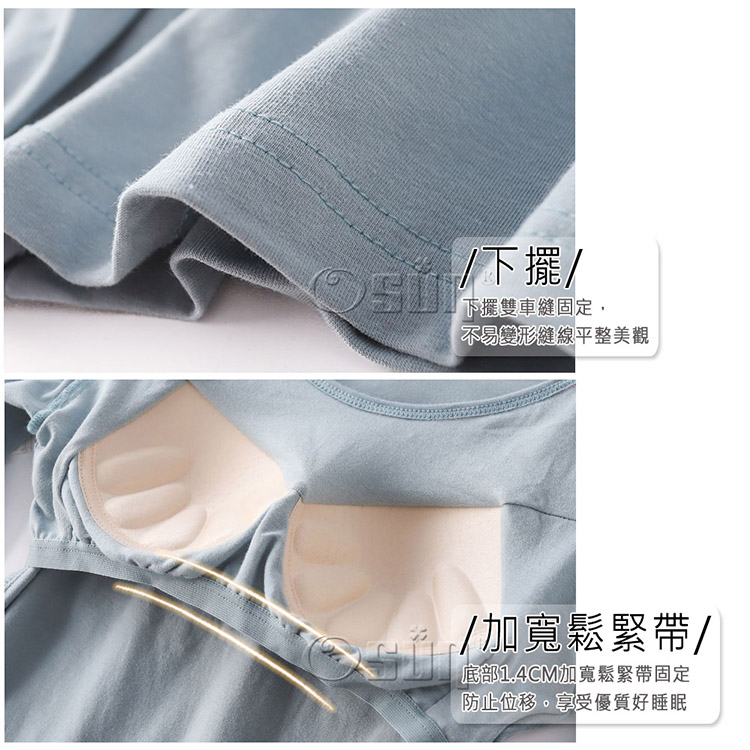 自帶胸墊免穿內衣穿著舒適,居家休閒活動、夜晚睡眠皆可穿~
