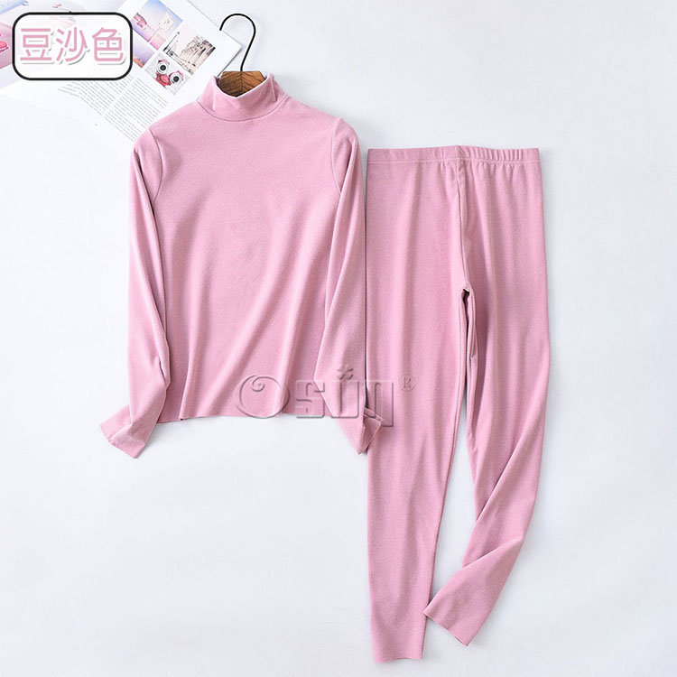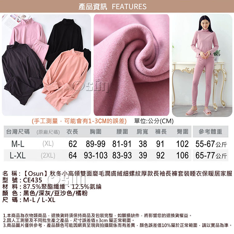 產品名稱:【Osun】秋冬小高領雙面磨毛潤膚絨細螺紋厚款長袖長褲套裝睡衣保暖居家服